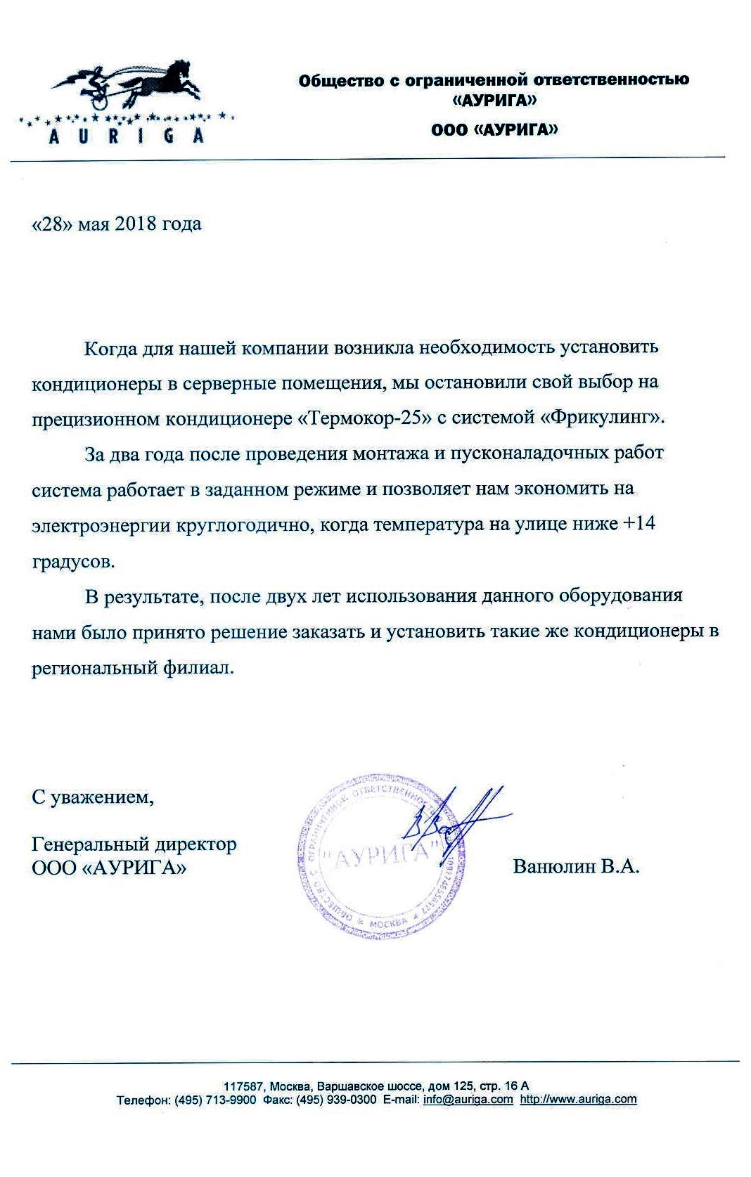 От компании "АУРИГА"