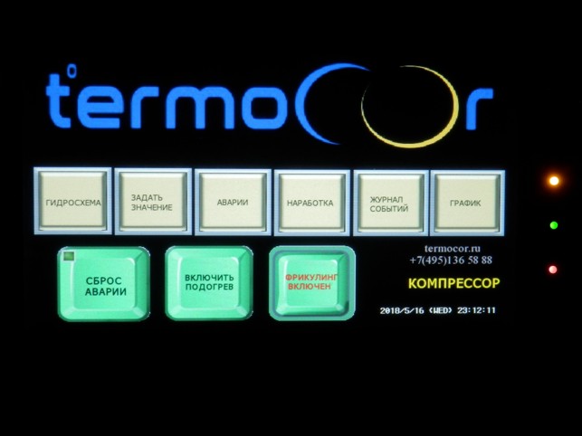 Прецизионные кондиционеры «Термокор» обеспечивают не только циклы работы кондиционера компрессор/фрикулинг, но и отображают на сенсорной панели все процессы, протекающие в системе. При этом подключившись с любого смартфона или планшета (достаточно иметь выход в интернет) Вы можете из любой точки посмотреть состояние работы серверной и при необходимости произвести необходимые переключения, изменение установок и тд и тп.